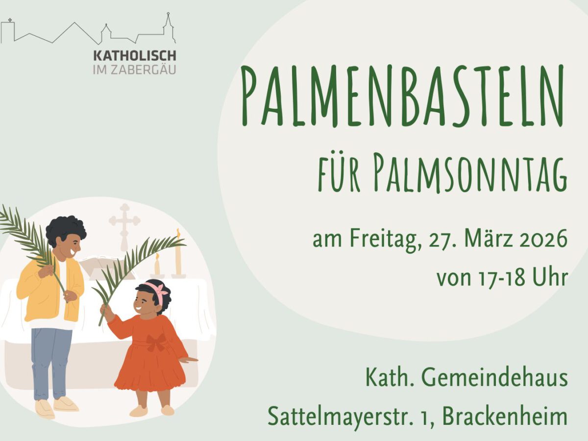 Das Palmenbinden findet am Freitag, den 27. März 2026 von 17:00-18:00 Uhr im Gemeindesaal in Brackenheim, Sattelmayerstr. 1 statt.