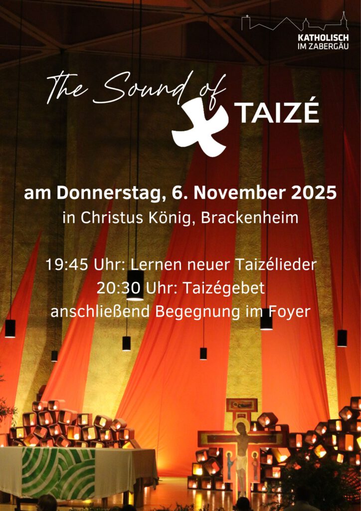 Hiermit laden wir Sie herzlich zum nächsten Taizé-Abend am Donnerstag, den 6. November in Brackenheim ein.